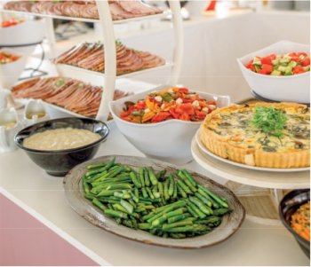 - Three course luncheon from chef’s tables serving appetisers, mains from the grill and the deli, desserts and cheese