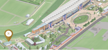 - Concourse level of the grandstand, positioned trackside after the post